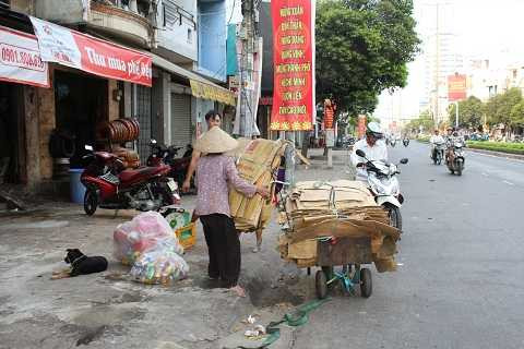 Rong ruổi khắp ngang cùng ngõ hẻm, với người phụ nữ này Tết cũng chỉ là một ngày bình thường. Không những không được nghỉ ngơi, bà còn tranh thủ đi nhiều hơn để thu mua được nhiều vỏ lon, chai nhựa...