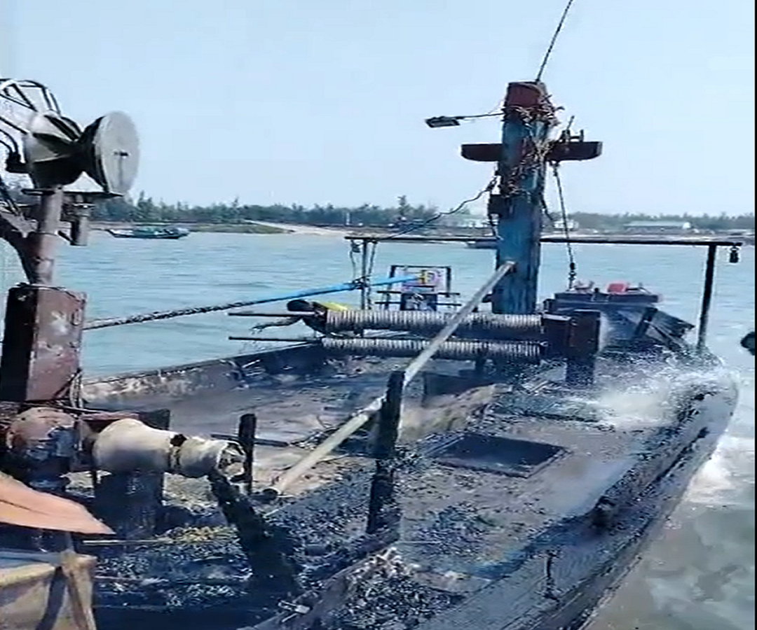 Tàu cá cháy trơ khung do chập điện. (Ảnh: CTV)