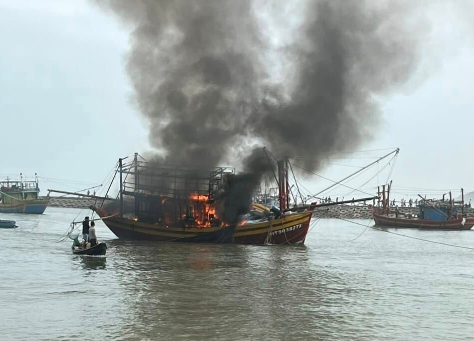 Theo đó, khoảng 13h20 cùng ngày, tàu cá mang số hiệu HT 90382 TS, công suất gần 400CV, do ông Mai Hồng Trịch (trú thôn 4 Đông Yên, xã Kỳ Lợi) làm chủ, neo đậu tại khu vực bến neo đậu tàu thuyền khu tái định cư Kỳ Lợi (thuộc địa bàn phường Kỳ Phương, thị xã Kỳ Anh) thì bốc cháy dữ dội.