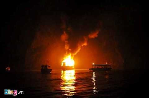 | Tàu du lịch nghỉ đêm trên vịnh Hạ Long bốc cháy - Ảnh Zing.vn |