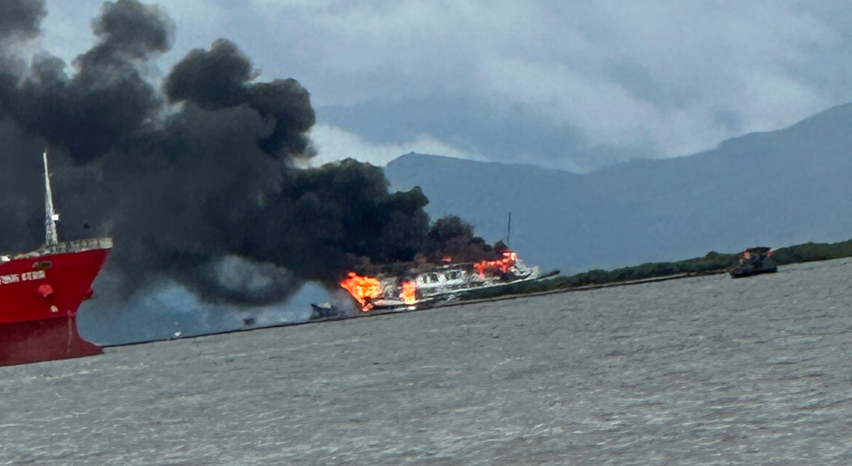Tàu du lịch bốc cháy tại khu vực Đầu Chu, ngoài khơi xã Phù Long (huyện Cát Hải, Hải Phòng).