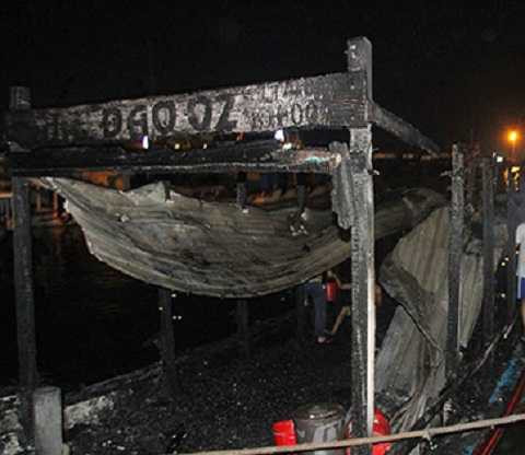 Vụ hỏa hoạn không gây thiệt hại gì về người, nhưng ngọn lửa đã thiêu rụi con tàu của ông Nguyễn Văn Khương.