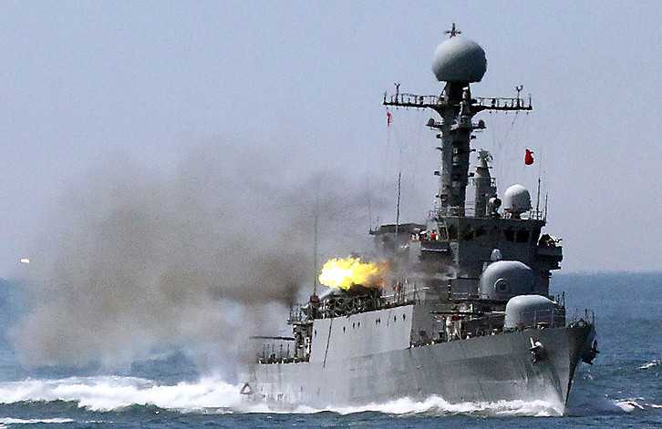 | Tàu Hải quân Hàn Quốc tập trận trên biển |