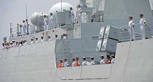 | Binh lính Hải quân Trung Quốc trên tàu Wei Fang |