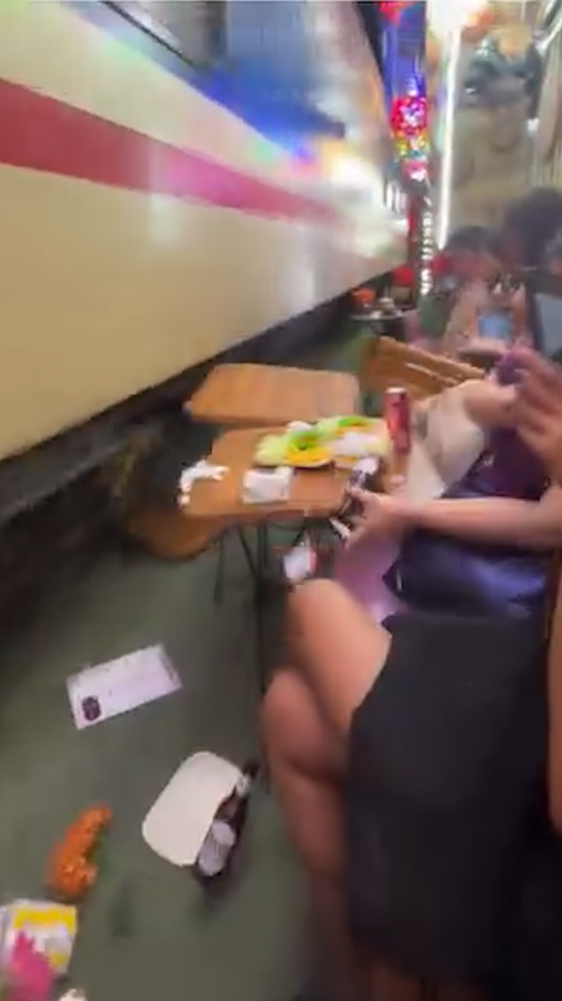 Tàu hỏa đâm văng bàn ghế ở phố đường tàu Hà Nội, khách Tây hú vía