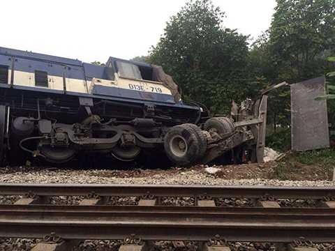 Tại hiện trường, đầu máy DI3E - 719 bị đổ nghiêng cách đường sắt khoảng 7m, trật bánh một toa xe, hư hỏng đường 4 cầu ray. Xe ô tô tải bị đầu tàu đè nát.