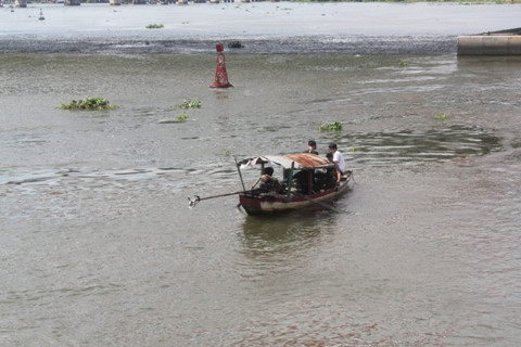| Lực lượng cứu hộ cứu nạn thuộc Sở PCCC TP.HCM đang nỗ lực tìm kiếm thi thể nạn nhân bị tàu húc văng xuống sông Sài Gòn (Ảnh: Phạm Nguyễn) |