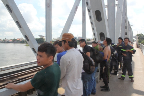 | Lực lượng chức năng có mặt tại cầu Bình Lợi triển khai công tác cứu hộ cứu nạn (Ảnh: Phạm Nguyễn) |