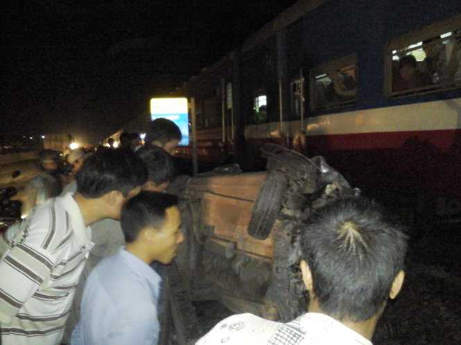 Chiếc ô tô bị kéo lê theo tàu khoảng 50m sau đó kẹt giữa ta luy đường. Tài xế ô tô bị văng ra khỏi xe khoảng 40m, chết tại chỗ.