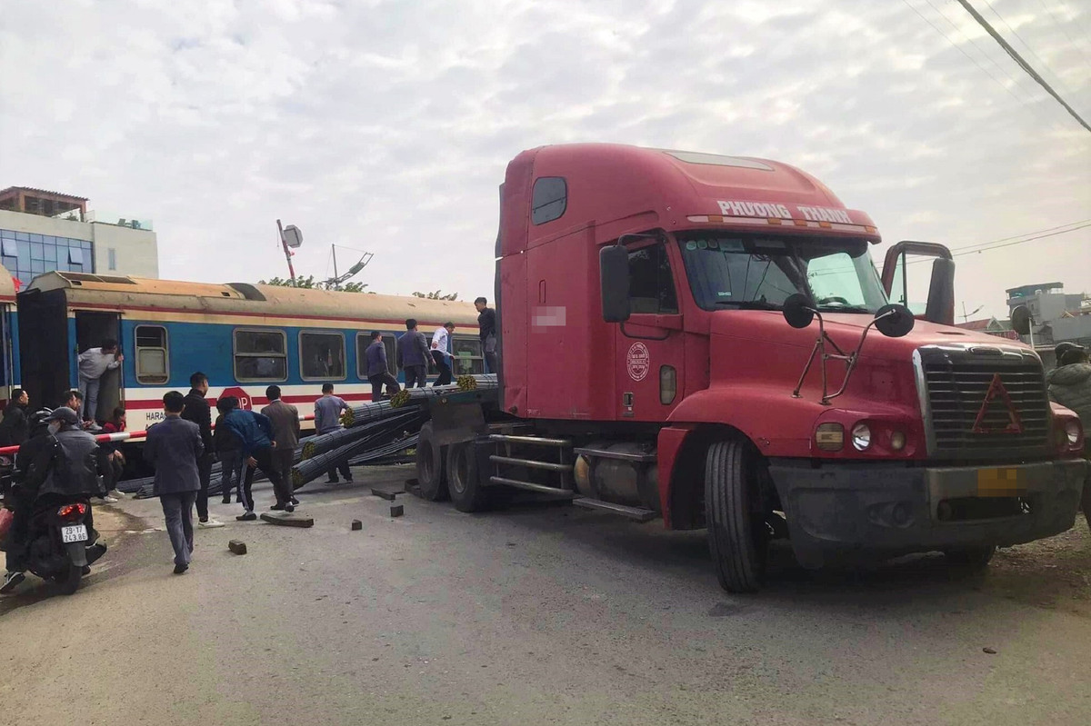Cụ thể, xe đầu kéo chở nhiều bó sắt đang rẽ vào đường ngang thì va chạm với tàu khách SE5 di chuyển theo hướng Bắc - Nam.