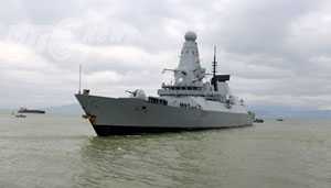 | Đúng 9h sáng 18/12, tàu khu trục HMS Daring (D32) đã tiến vào cầu cảng |