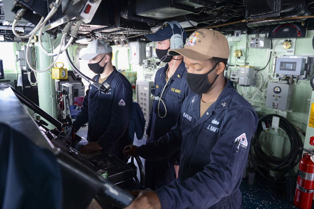 Thủy thủ đoàn trên tàu khu trục USS Russell trong đợt tuần tra tự do hàng hải ở Trường Sa vào ngày 17/2. (Ảnh: Hải quân Mỹ)