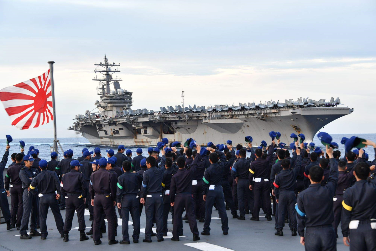 Hôm 8/7, trên Twitter, Lực lượng Phòng vệ biển Nhật Bản (JMSDF) cho biết hai tàu huấn luyện JS Kashima và JS Shimayuki của nước này đã tham gia tập trận chung cùng tàu sân bay USS Ronald Reagan và tàu khu trục USS Mustin của Hải quân Mỹ tại Biển Đông vào ngày 7/7.