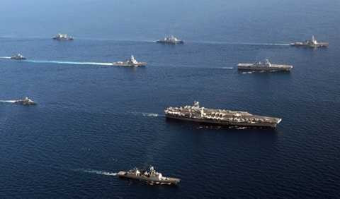 | Nhóm tàu sân bay USS George Washington trong một cuộc tập trận - Ảnh: Reuters |