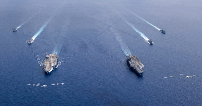 Hải quân Mỹ hôm 4/7 điều động 2 tàu sân bay và một số chiến hạm hộ tống tới Biển Đông để tham gia tập trận. Động thái này diễn ra vào thời điểm Trung Quốc đang triển khai tập trận trái phép tại quần đảo Hoàng Sa của Việt Nam từ 1/7-5/7.