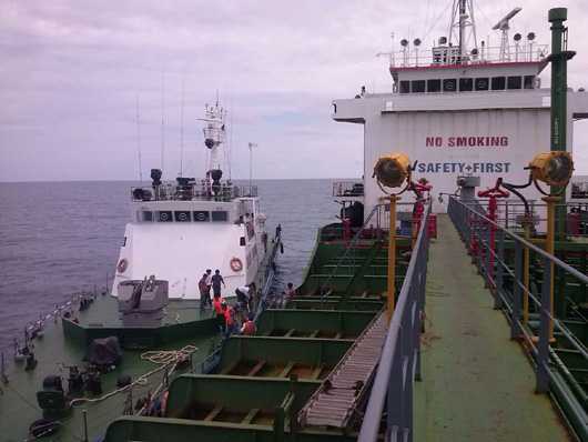 | Tàu CSB 2004 cập mạn tàu Sunrise để hỗ trợ, cứu nạn |