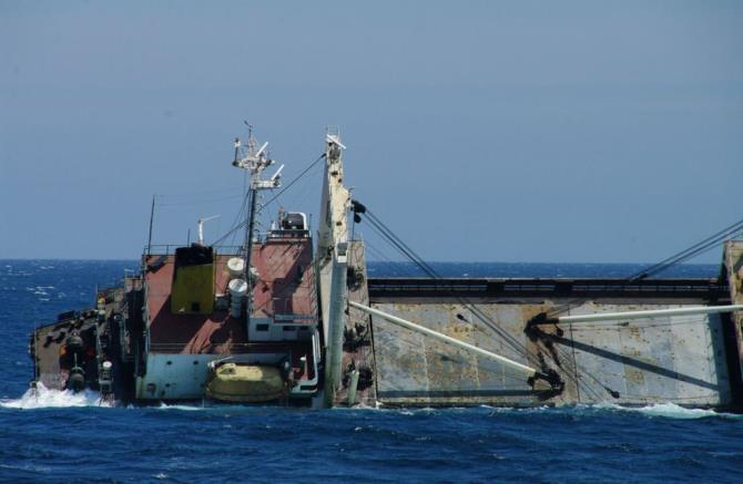 Hình ảnh tàu vận tải Triều Tiên bị chìm ngoài khơi Nhật Bản. (Ảnh: Kyodo)