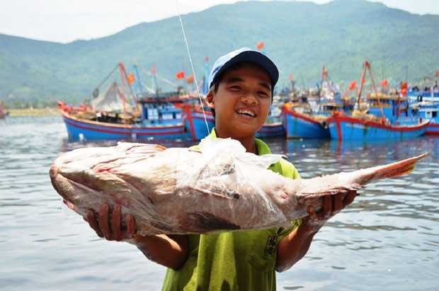 Vác con cá mú to ngang thân mình, thuyền viên mới 16 tuổi Huỳnh Tấn Đạt cười bảo: “Cá mú là loại hảo hạng, được bán trong các nhà hàng, khách sạn với giá cao. Đi biển mà gặp nhiều cá mú coi như sướng. Con cá ni bán chắc cả triệu đồng đó anh ạ!”.