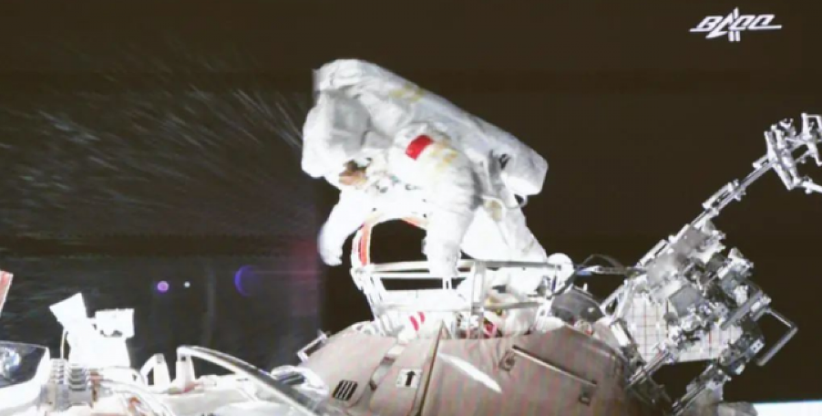 Hình ảnh các phi hành gia tàu Thần Châu 13 trở về khoang sau chuyến đi bộ ngoài gian thứ 2. (Ảnh: Tân Hoa xã)
