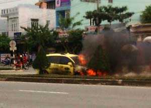 Nhận được tin báo, Phòng Cảnh sát PCCC số 5 (khu vực Cẩm Lệ) đã điều động 2 xe cùng 15 cán bộ, chiến sĩ đến hiện trường. Sau 10 phút, đám cháy được dập tắt. Hậu quả, phần đầu và cabin xe taxi bị cháy rụi.