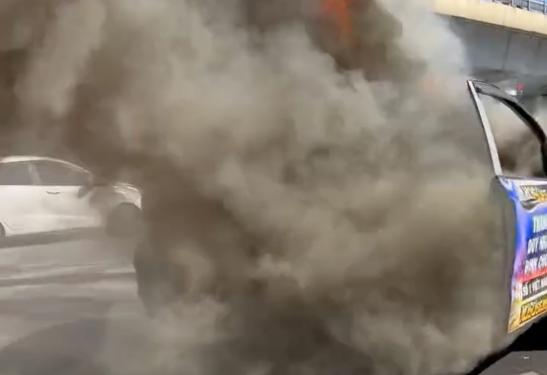 Khi phát hiện hỏa hoạn, nam tài xế vội nhảy khỏi xe, hô hoán, nhờ sự giúp đỡ. Ngọn lửa phát ra từ khu vực chứa bình ắc-quy xe máy, rồi lan nhanh ra phần khung xe, khói đen bốc cao. Vụ cháy khiến giao thông qua khu vực này ùn ứ.
