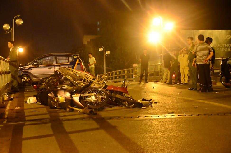 Xe taxi khi gây tai nạn đang lưu thông hướng Ngã Tư Sở - Nguyễn Lương Bằng. Cú đâm liên hoàn và bất ngờ khiến 7 xe máy văng ra đường và gần chục người nhập viện. Hầu hết nạn nhân đều là thanh niên. Các nhân chứng đều khẳng định rằng người nhảy từ trên cầu xuống chính là tài xế taxi.