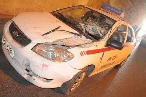 | Chiếc xe taxi gây tai nạn. |