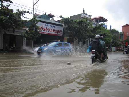 Ngay tại TP.Sơn La, từ 10h sáng đến 12h trưa ngày 28/7, nước mưa đã gây lũ cục bộ trên một số đường phố chính.