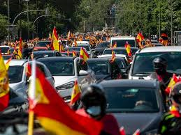 Những người biểu tình diễu hành với hàng nghìn ô tô đi qua thủ đô Madrid, kêu gọi Thủ tướng Pedro Sanchez và Phó Thủ tướng Pablo Iglesias từ chức vì cách xử lý cuộc khủng hoảng dịch COVID-19, nhất là việc áp đặt các biện pháp hạn chế, gây thiệt hại nặng nề cho nên kinh tế nước này, khiến nhiều người mất việc làm.
