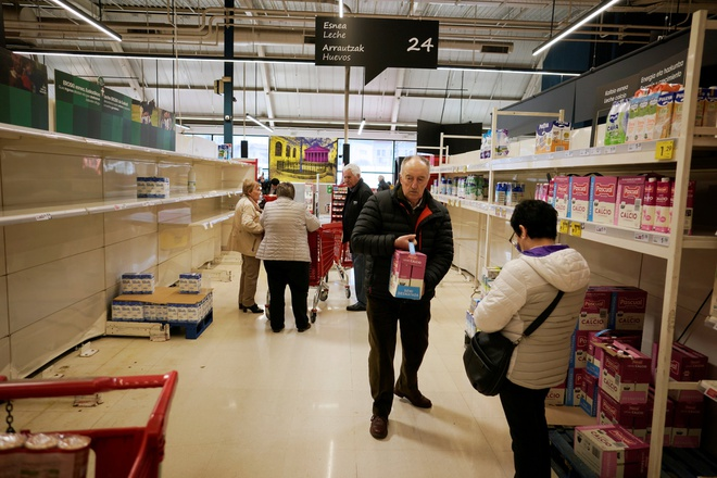 Một siêu thị trống rỗng hàng ở xứ Basque khi người dân mua hàng tích trữ giữa lúc dịch bệnh lan rộng. (Ảnh: Reuters)