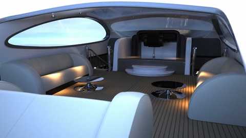 Chiếc du thuyền siêu xe SC122 có tổng chiều dài lên tới 37,19 mét. Nó được thiết kế đủ chỗ để bố trí với 4 phòng sang trọng, một khu vực quán bar mini. Điểm đặc biệt của chiếc du thuyền này đó là có hẳn một garage xe hơi ở dưới đuôi, đủ chỗ chứa một chiếc siêu xe.