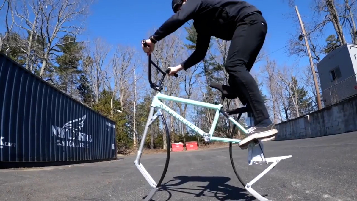 Scotty Cranmer và Vinny Mannino, hai tay đua xe đạp người Mỹ nghĩ ra ý tưởng chế tạo chiếc xe đạp có thể di chuyển bằng cách nhảy lò cò, có thể bật như lò xo.