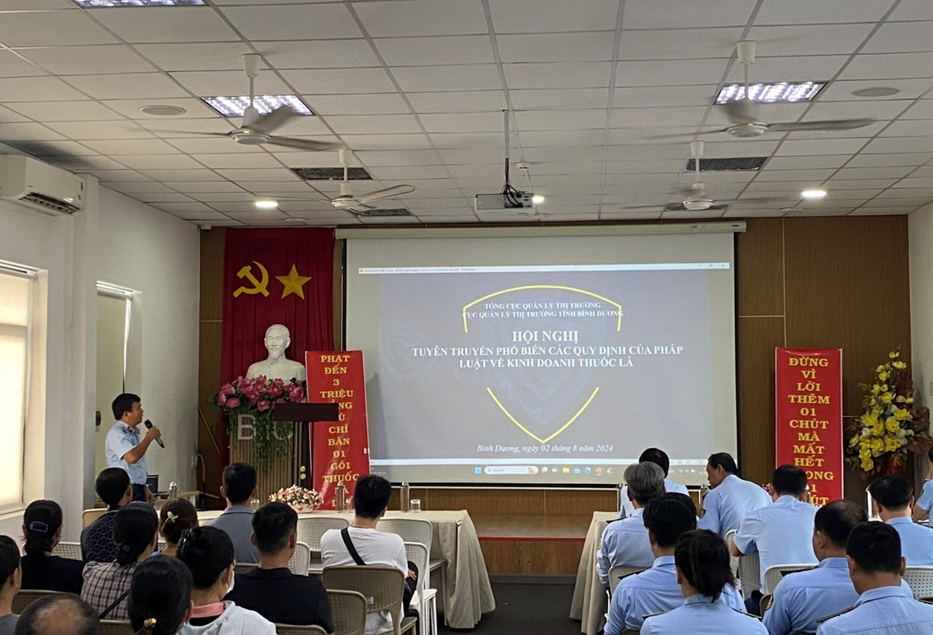 Ngày 2/8, Cục QLTT Bình Dương tổ chức Hội nghị tuyên truyền phòng, chống thuốc lá lậu và thuốc lá giả năm 2024 với sự tham dự của các hộ kinh doanh thuốc lá trên địa bàn TP. Thủ Dầu Một.