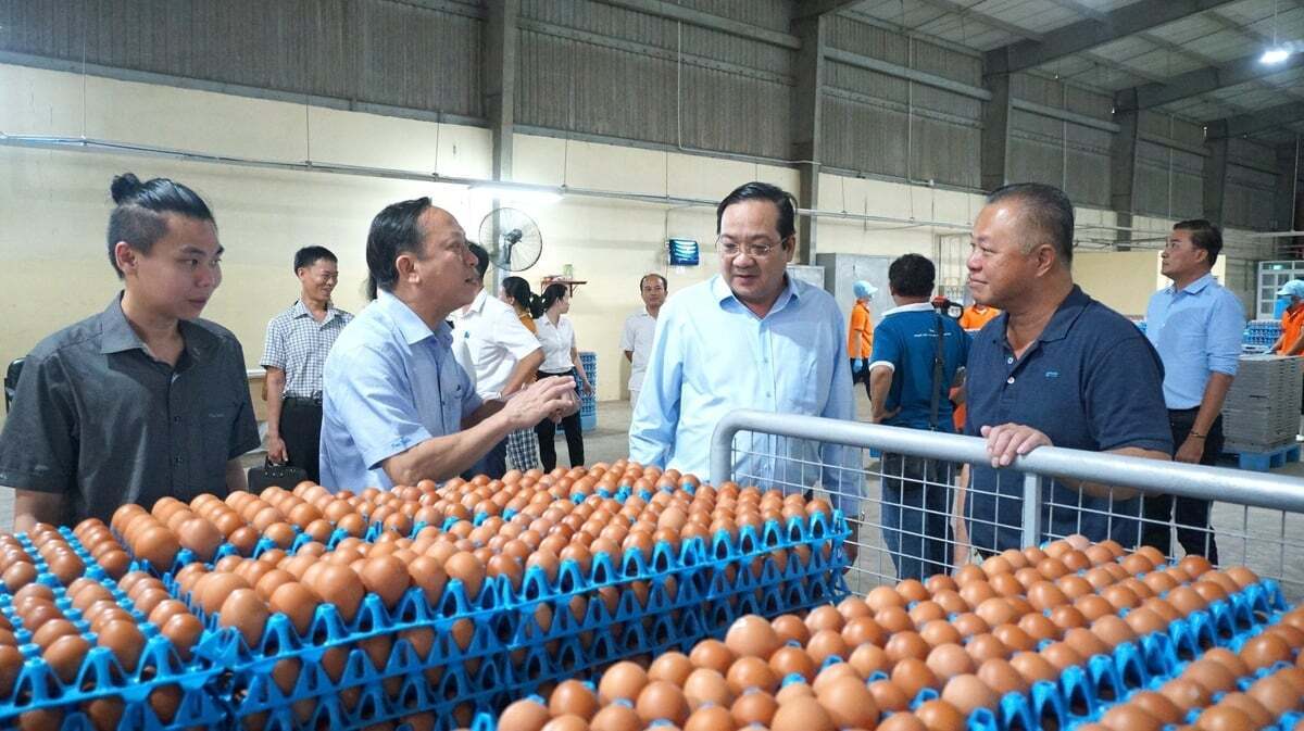 Sau đó, đoàn công tác tiếp tục đến QL Vietnam Agroresources - Công ty TNHH QL Farms, doanh nghiệp 100% vốn từ Tập đoàn QL Resources (Malaysia). Đây là nơi đang vận hành dây chuyền sản xuất trứng gà xuất khẩu với 2 triệu con gà đẻ mỗi ngày.