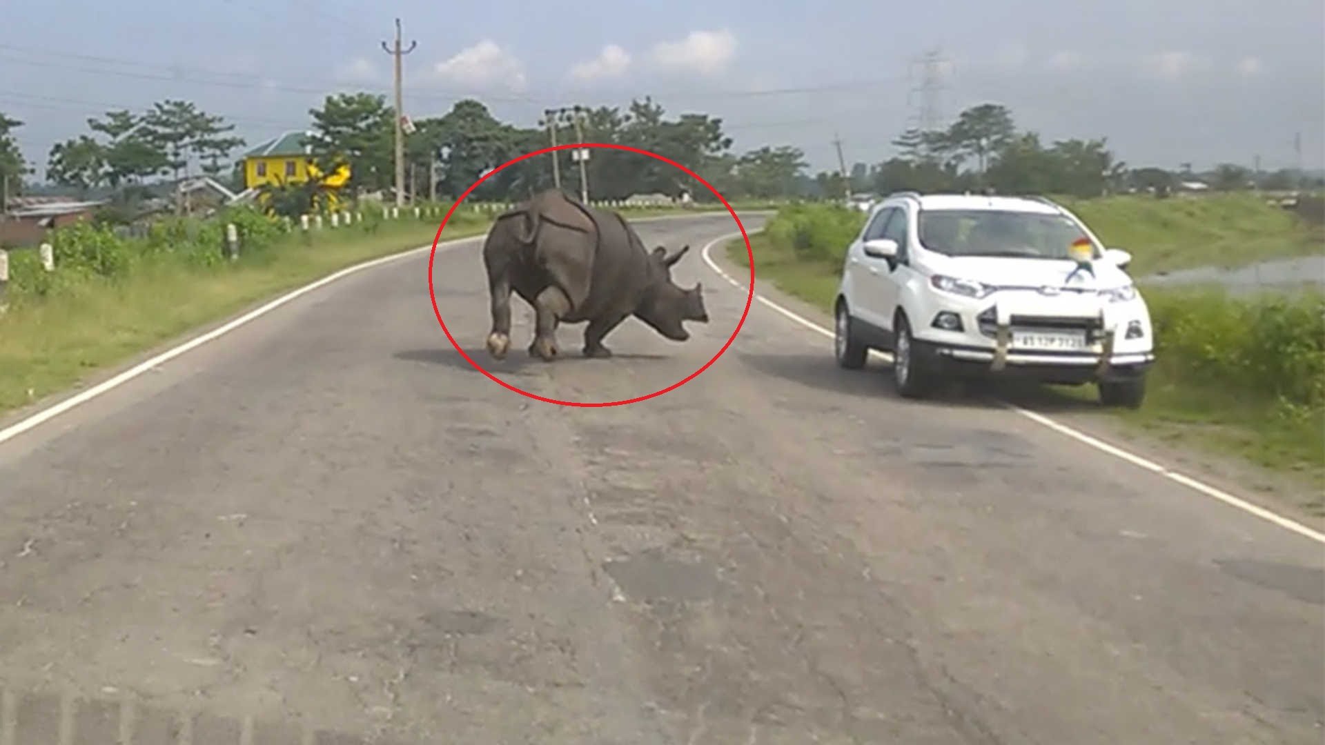 02/09/2017 11:37:00 +07:00Con tê giác hung hăng đuổi theo ô tô khiến hàng loạt tài xế sợ hãi quay đầu xe bỏ chạy, sự việc xảy ra tại bang Assam, Ấn Độ.