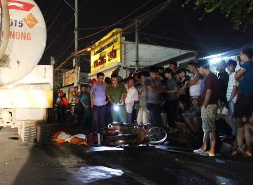 Cú va chạm khiến xe máy ngã nhoài trên đường, nam thanh niên bị hất văng ra giữa đường. Không may chiếc xe bồn BKS 61LD-1015 lưu thông cùng chiều lao tới. Tài xế không xử lý kịp đã cán qua đầu khiến nạn nhân chết tại chỗ.
