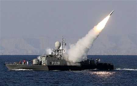 | Tàu chiến Iran phóng tên lửa. Ảnh UPI |