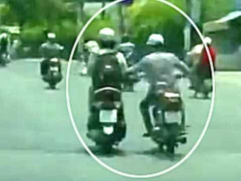 Mọi hành vi phạm tội của tên cướp đã bị một camera của chiếc ô tô lưu thông cùng chiều phía sau ghi lại, sau đó chủ nhân đoạn clip đã tung lên mạng.