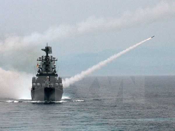 | Tàu tuần dương thuộc Hạm đội Biển Đen của Nga bắn tên lửa |