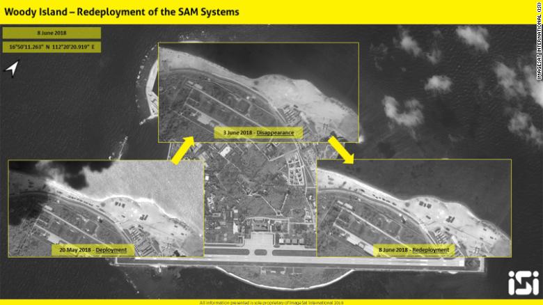 Theo CNN, những hình ảnh ban đầu do ImageSat International (ISI) cung cấp hôm 3/6 cho thấy nơi từng có một số lượng lớn bệ phóng tên lửa chỉ còn là bãi trống. Tuy nhiên, trong phân tích tình báo ngày 11/6, tổ chức này cho rằng các vũ khí đã xuất hiện trở lại trên đảo Phú Lâm, thuộc quần đảo Hoàng Sa của Việt Nam.