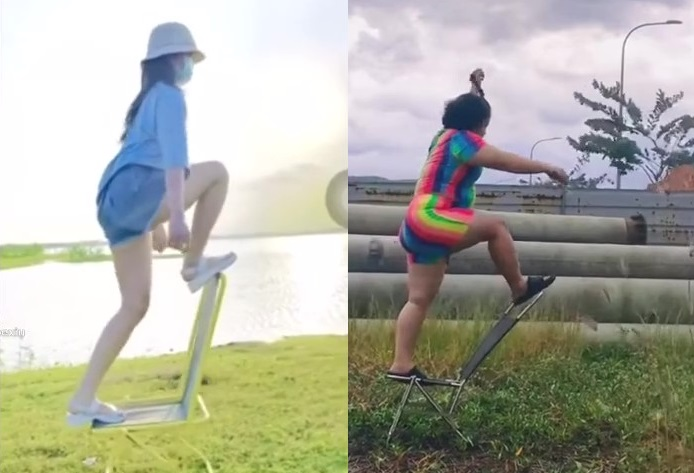 "Đu" theo trend đi bằng ghế của các hot girl mạng, cô nàng mập mạp làm chiếc ghế gãy đôi.