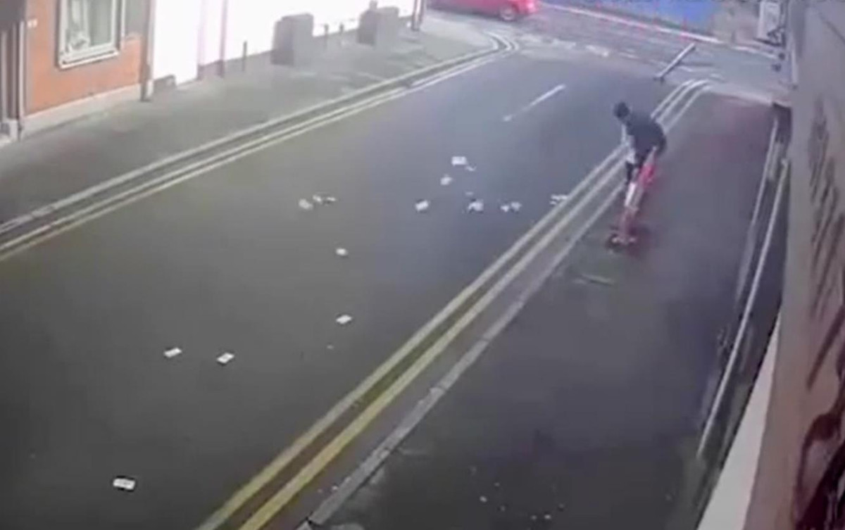 Tên trộm bất lực nhìn tiền vừa 'thó' bị gió thổi bay