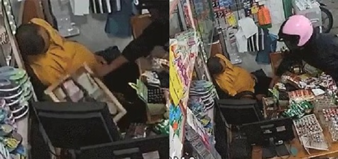 Rút được ngăn kéo đựng tiền ra khỏi hộc tủ ngay chỗ chủ cửa hàng đang ngồi, tên trộm lỡ tay đánh rơi rồi cuống cuồng chạy mất dép.