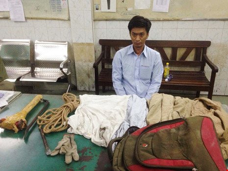 Trước đó, tối 2/4, Thành mang túi xách chứa xà beng, búa, đục, dây thừng, găng tay, quần áo… đón xe ôm đến tòa nhà Sài Gòn Trade Center (37 Tôn Đức Thắng, phường Bến Nghé, quận 1) với ý định ăn trộm.