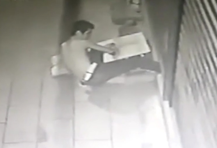 Tên trộm xui xẻo bị kẹt chân vào cửa cuốn