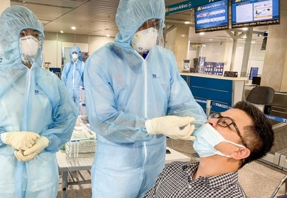 Lấy mẫu xét nghiệm COVID-19 nhanh với hành khách bay.