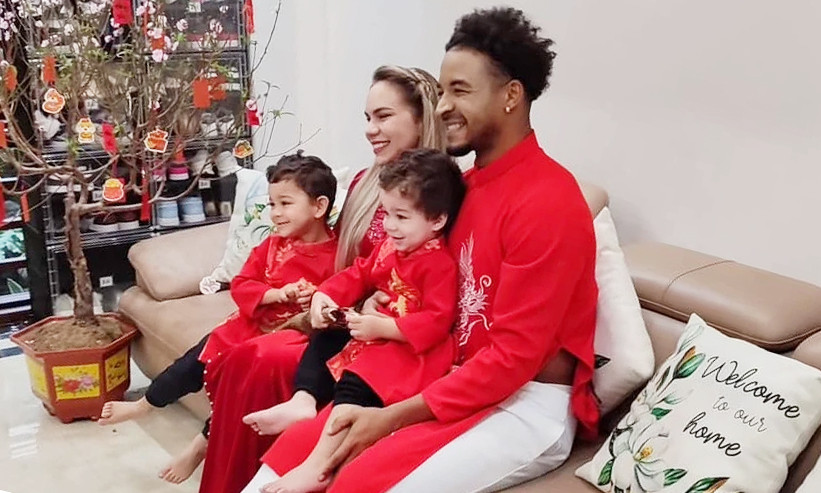 Vua phá lưới AFF Cup 2024 xuất viện hôm 24/1. Về đến Nam Định, Xuân Son cùng vợ con đi chụp bộ ảnh Tết trong trang phục áo dài đỏ. Năm nay, gia đình của tiền đạo câu lạc bộ Nam Định cũng từ quê hương Brazil sang Việt Nam đón Tết Nguyên đán.