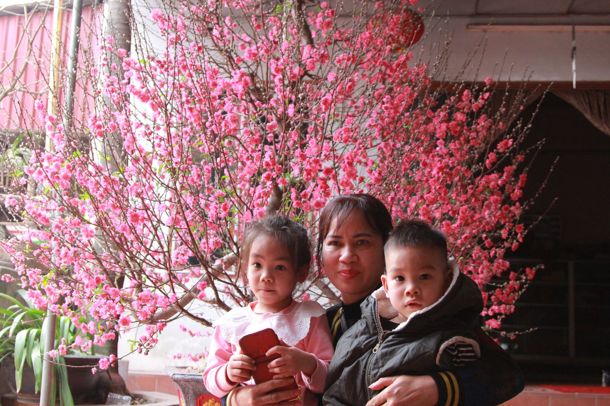Những ngày giáp Tết Nguyên đán 2021, PV VTC News có mặt nhà bà Bích. Hai bé Quỳnh Anh và Nam trong bộ quần áo mới nô đùa ngoài sân bên cây quất, cây đào. Thấy bà Bích về, chúng chạy ra gọi mẹ, cười nói tíu tít.