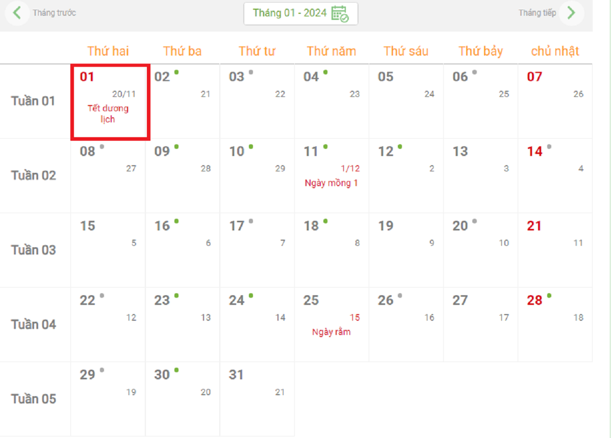 - Lựa chọn 1 ngày cuối năm Quý Mão (2023) và 4 ngày đầu năm Giáp Thìn (2024).