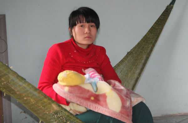 Chị Bùi Thị Vân (vợ anh Biên) buồn tủi ru con trong cái rét cuối năm.